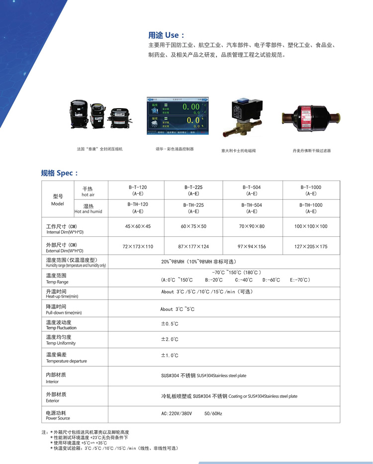 高低溫試驗箱為實現(xiàn)溫度度變化針對產(chǎn)品的可靠性驗證,主要為航空、航天、汽車、材料、石油、化工、電子、通訊等科研及生產(chǎn)單位提供溫度變化環(huán)境,供用戶對整機(或部件)、電器、儀器、材料等作溫度應(yīng)力篩選試驗,以便考核試品的適應(yīng)性或?qū)υ嚻返男袨樽鞒鲈u價,真實地反映電工電子產(chǎn)品在實際使用過程中對溫濕度環(huán)境變化的適應(yīng)性,暴露產(chǎn)品的缺陷,是新產(chǎn)品研制、樣機試驗、產(chǎn)品合格鑒定試驗全過程必不可少的重要試驗手段。